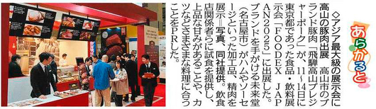 2025年3月18日付、中日新聞朝刊に、アジア最大級の食品・飲料展示会「FOODEX JAPAN 2025(第50回 国際食品・飲料展)」に、飛騨高山のブランド豚「飛騨高山PLEASURE PORK」を出展した際の様子が掲載されました。